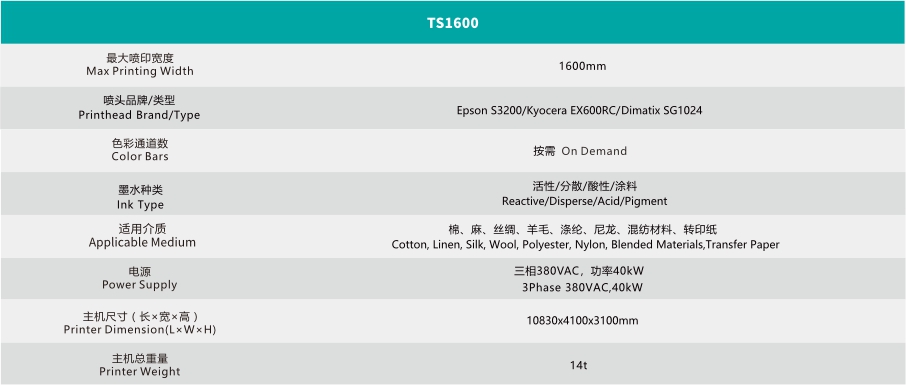 TS1600 Singlepass高速数码印花机 型号:TS1600